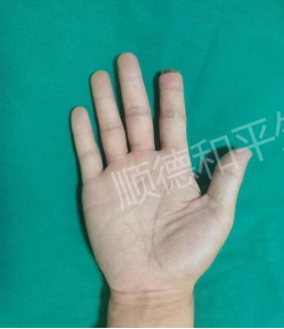 或許看實拍圖時,大家覺得看起來不像1年后的樣子,難道是PS的嗎?其實不然,高先生所接受的全型再造,是對比原先的手指大小、長度進行比擬再造,術中也會參照另外一只手的示指進行精細化設計,再到供區取一、回到受區補一。